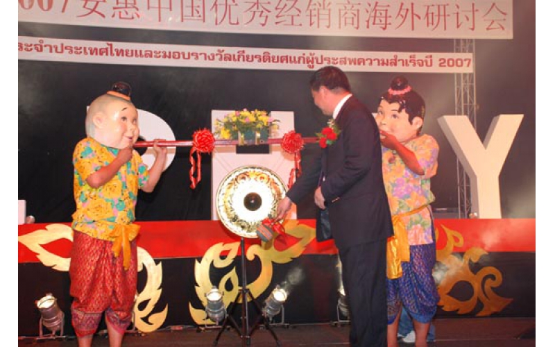 2007年5月29日,是安惠公司歷史上一個永遠值得紀念的日子。這一天,安惠第一家海外公司——安惠(泰國)有限公司在曼谷emerald大酒店隆重舉行成立慶典。安惠發展史由此掀開了新的一頁。它意味著安惠打造國際公司、拓展海外市場邁開了堅實的步伐。