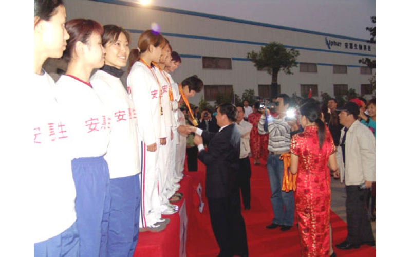 2005年10月22日至10月27日,首屆全國航空運動會的飛機定點跳傘比賽項目和飛機花樣跳傘項目在江蘇安惠生物科技公司廠區(qū)內(nèi)成功舉行。26日下午,在安惠生物科技有限公司廠區(qū)舉行了隆重的頒獎儀式,國家體育總局群眾體育司副司長平措西村和江蘇安惠生物有限公司董事長陳惠等為取得前三名運動員頒發(fā)了獎牌。