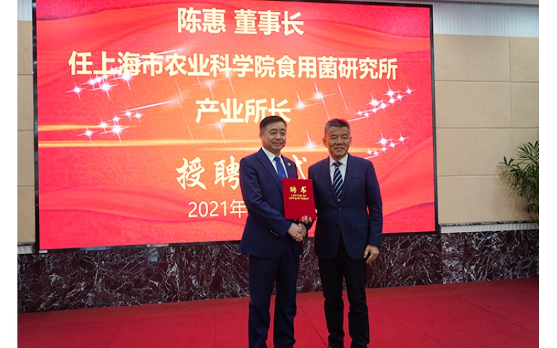 2021年3月22日,上海市農業科學院食用菌研究所與江蘇安惠生物科技有限公司共同成立“聯合科技創新中心”舉行揭牌儀式。會上,安惠公司董事長陳惠受聘該院食用菌研究所產業所長。